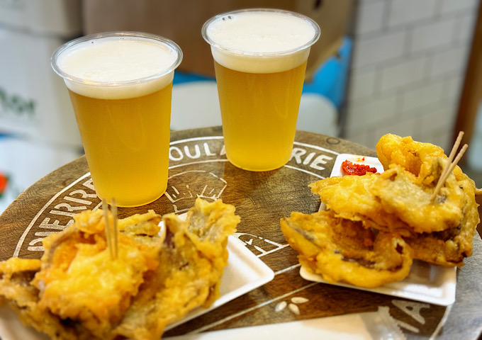 湯布院の地ビールと椎茸天
