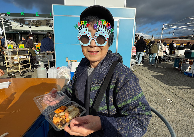 翌朝は館鼻岸壁朝市へ。前回はコロナの影響で開催中止されていたので、今回この朝市を楽しみにしていました。