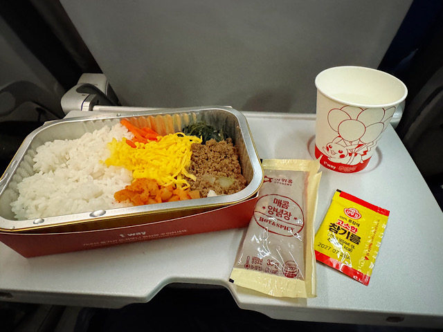 機内食はピビンバをチョイス。