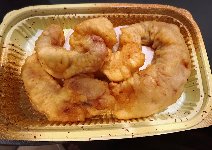 三原駅の 駅弁自販機 でタコ天を発見!もちろん即買い。
