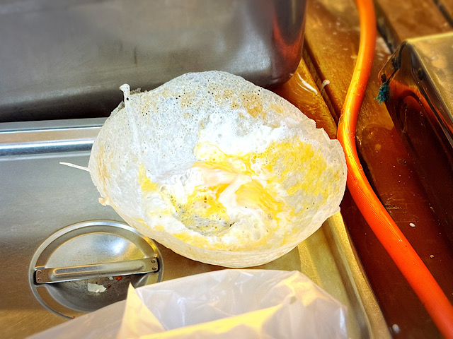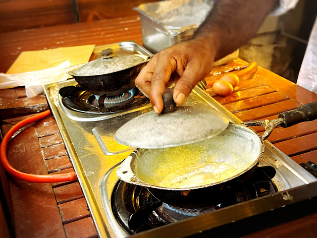 スリランカの定番ストリートフードで、米粉とココナッツミルクの生地をお椀型のパンで焼いた料理です。