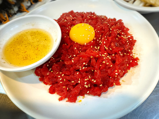 日本でも食べたことはないし、広蔵市場にはユッケ通りと呼ばれる場所があるものの、一度も食べたことがありませんでした。